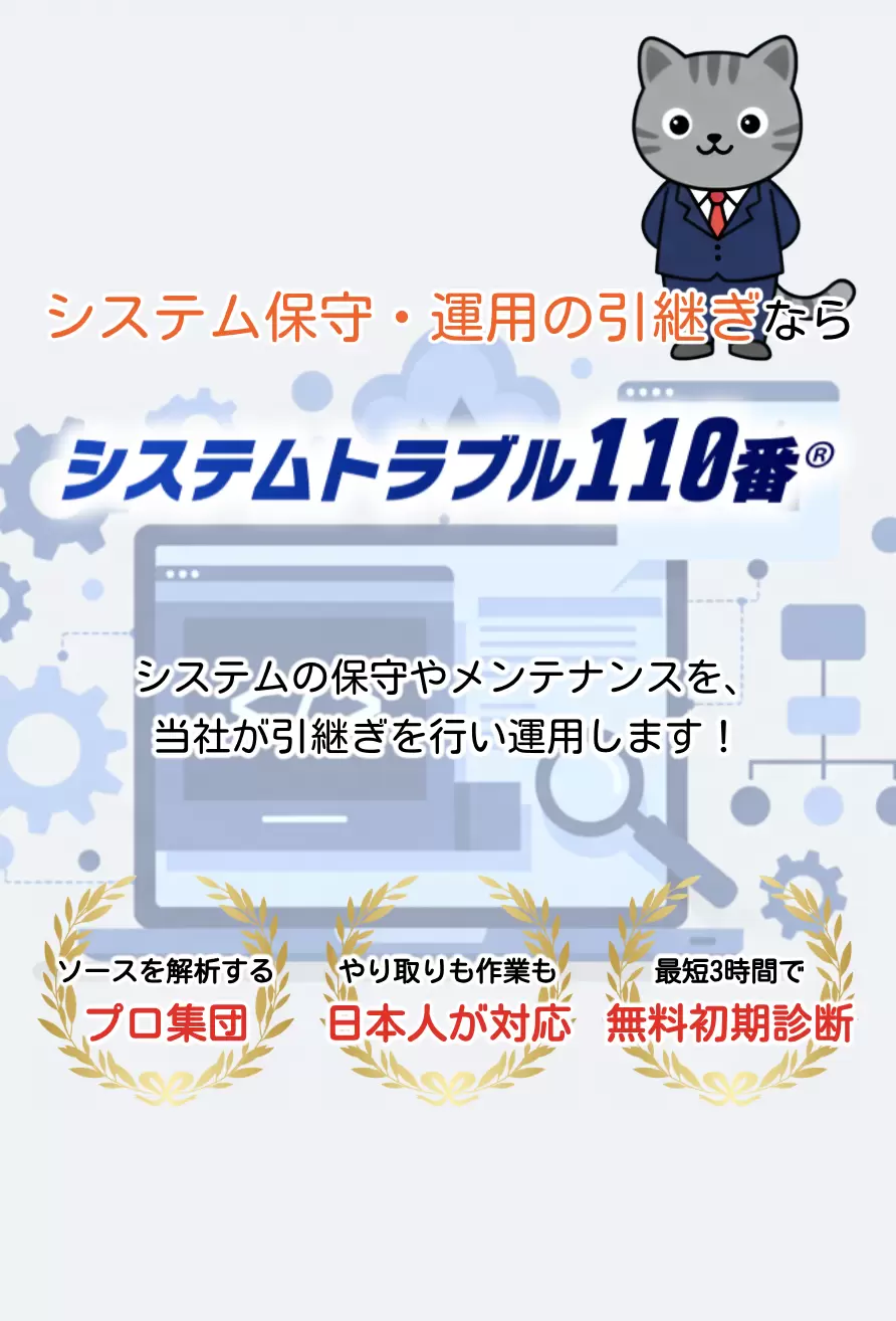 はい、緊急対応も承っております。システム停止やエラー、予期せぬ不具合など、業務に支障をきたすトラブルが発生した際は、できるだけ早く現状を把握し、最短で対応できるよう動きます。まずは最短3時間で無料で初期診断を行いますので、お電話またはメールフォームより、お気軽にご相談ください。